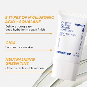 A green-tinted mineral sunscreen with 8 types of hyaluronic acid and soothing Cica that protects while neutralizing visible redness.