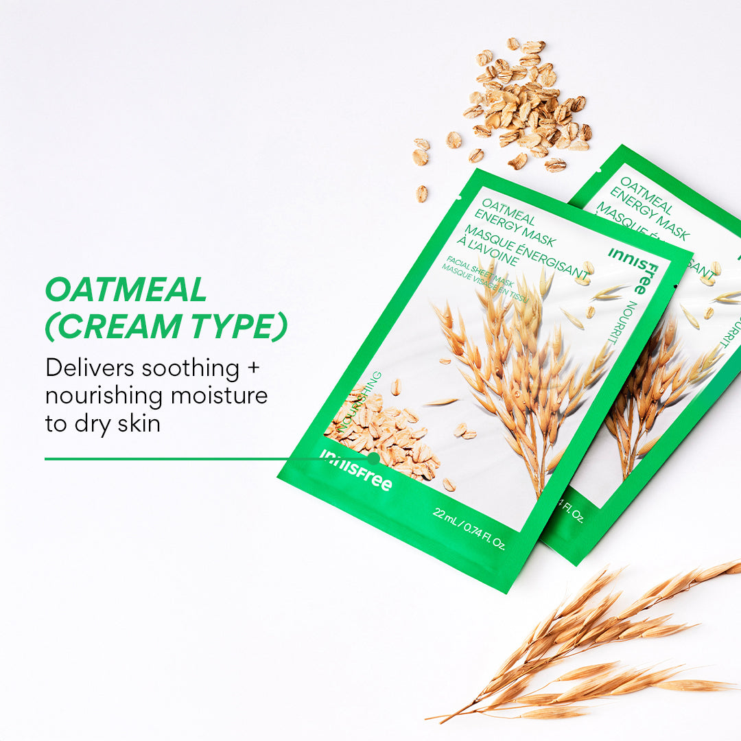 2 Oatmeal Energy Sheet Mask to deliver soothing + nourishing moisture to dry skin