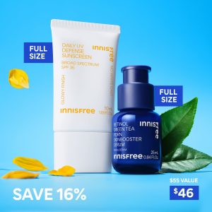 Visibly firm + protect skin with our Firm + Protect Duo. This bundle includes a full size Retinol Green Tea PDRN Skinbooster Serum and a full size of our cult-fave Daily UV Defense Sunscreen SPF 36. Apply Green Tea PDRN Serum to help enhance elasticity and visibly firm skin. Then. follow with Daily UV Defense Sunscreen in the AM.