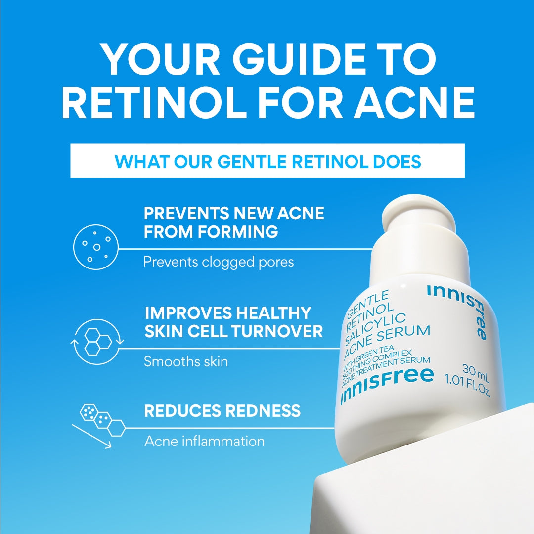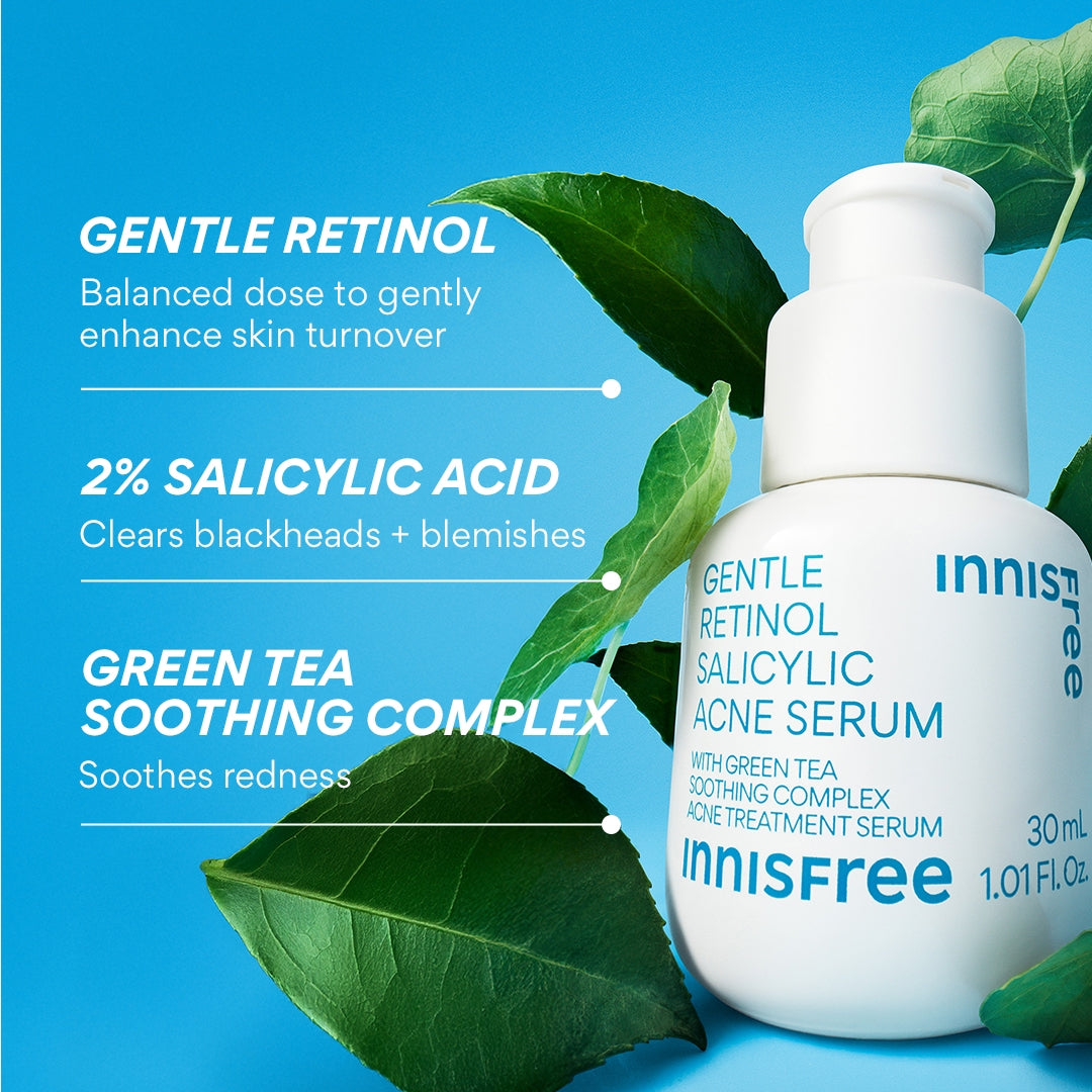A gentle & effective daily retinol serum for all skin types with 2% salicylic acid that treats + prevents acne & soothes redness without irritating.
