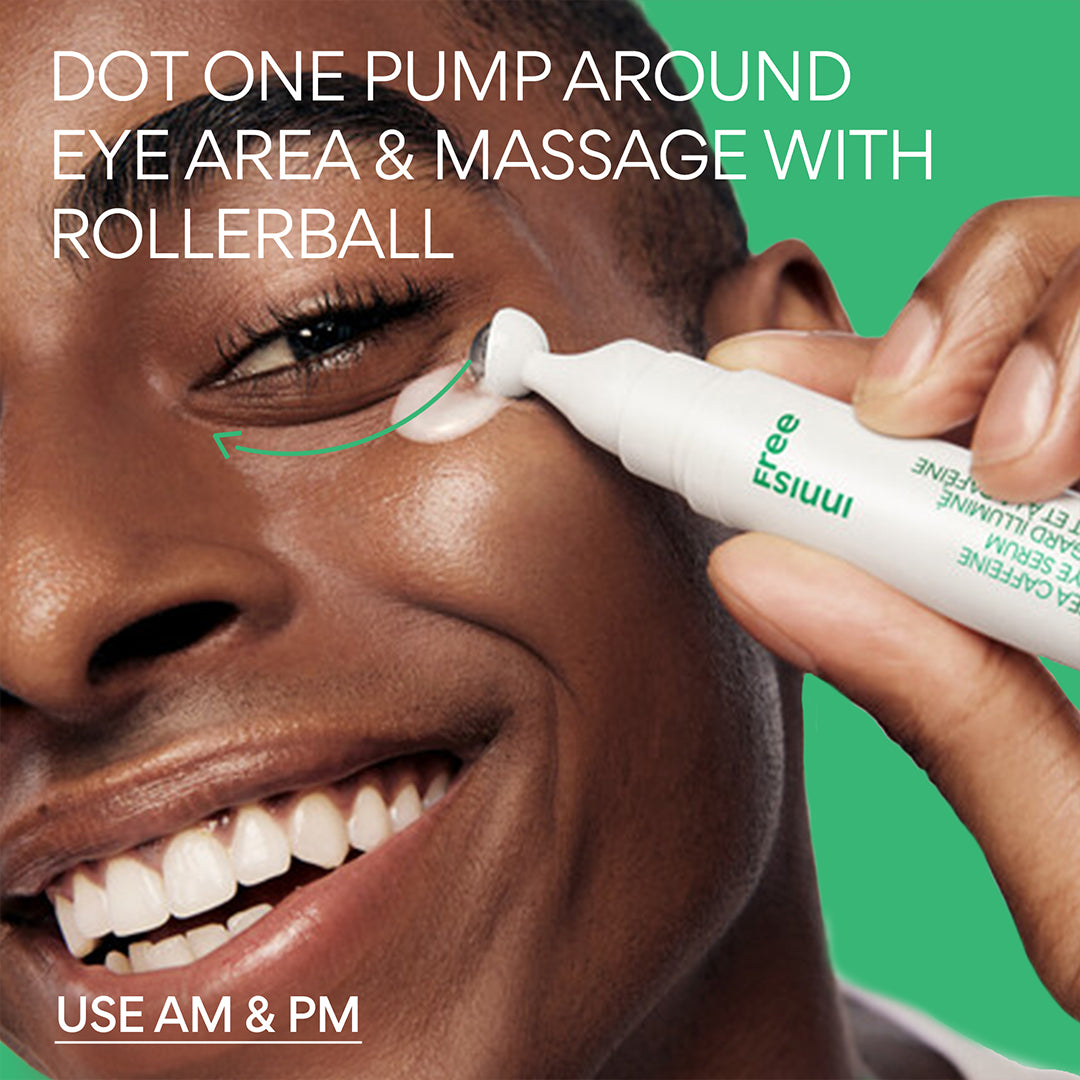 A hydrating eye serum with caffeine and niacinamide to help depuff. brighten the look of dark circles. and visibly address fine lines from dryness. Roller ball massager delivers cooling and depuffing benefits.