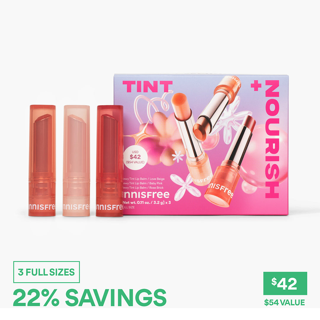 A limited-edition set with 3 iconic shades of Dewy Tint Lip Balm for nourished lips with a pop of color.